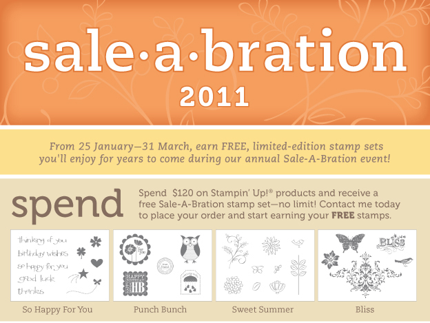 For more details, click here to download a PDF of the Sale-A-Bration brochure, containing images of the sets and lots of projects to inspire you! If you’d like a hard copy of this brochure, simply place a minimum $50 order with me and I’ll pop one in with your order. (By the way, my free magazine or sample offer with $50 orders from this post still applies, too!).