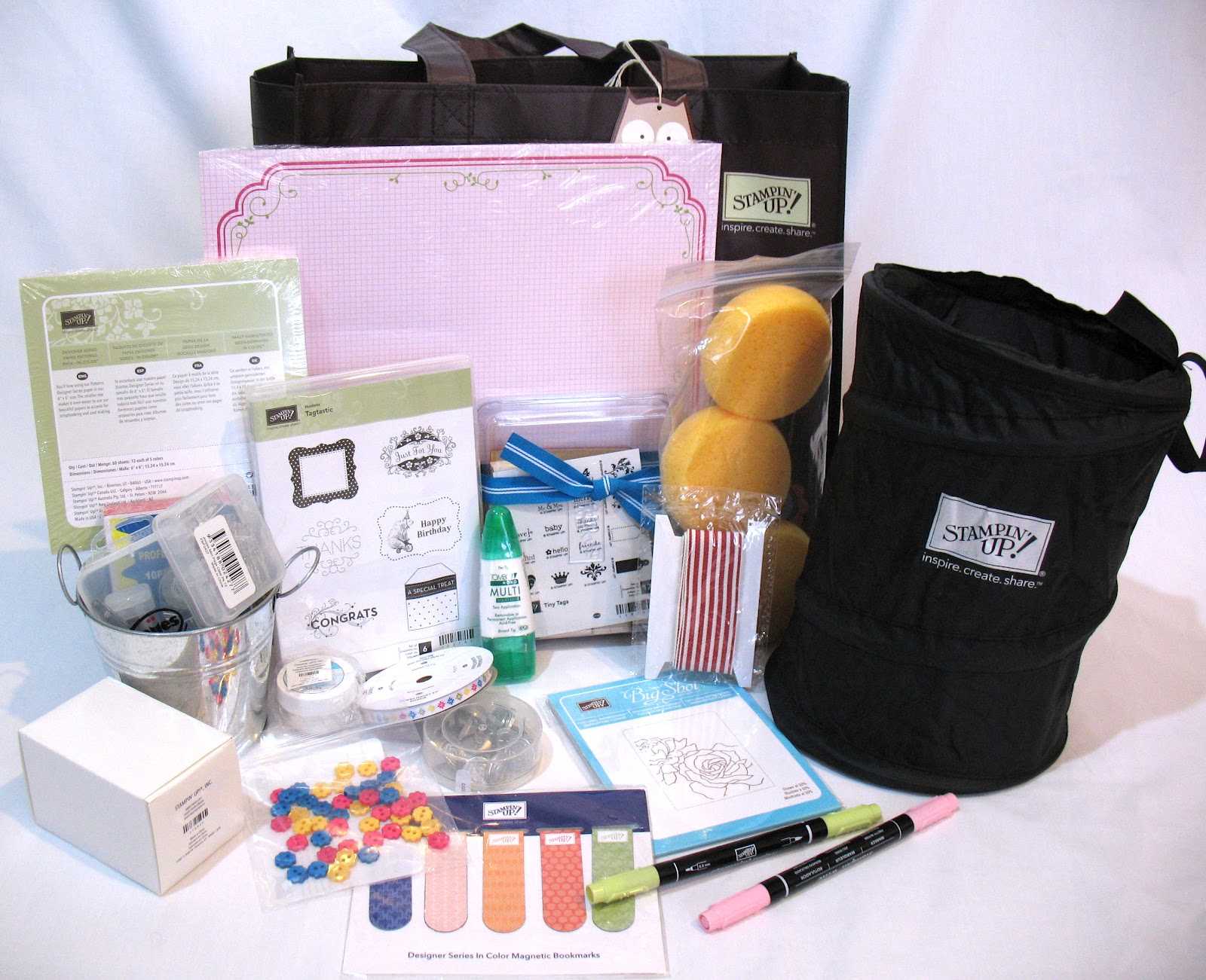 So what’s in here? Over $200 worth of goodies for your crafting pleasure! You should have heard the gasps from the ladies when I pulled everything out of the bag at my class on Sunday. Here’s what you could win: